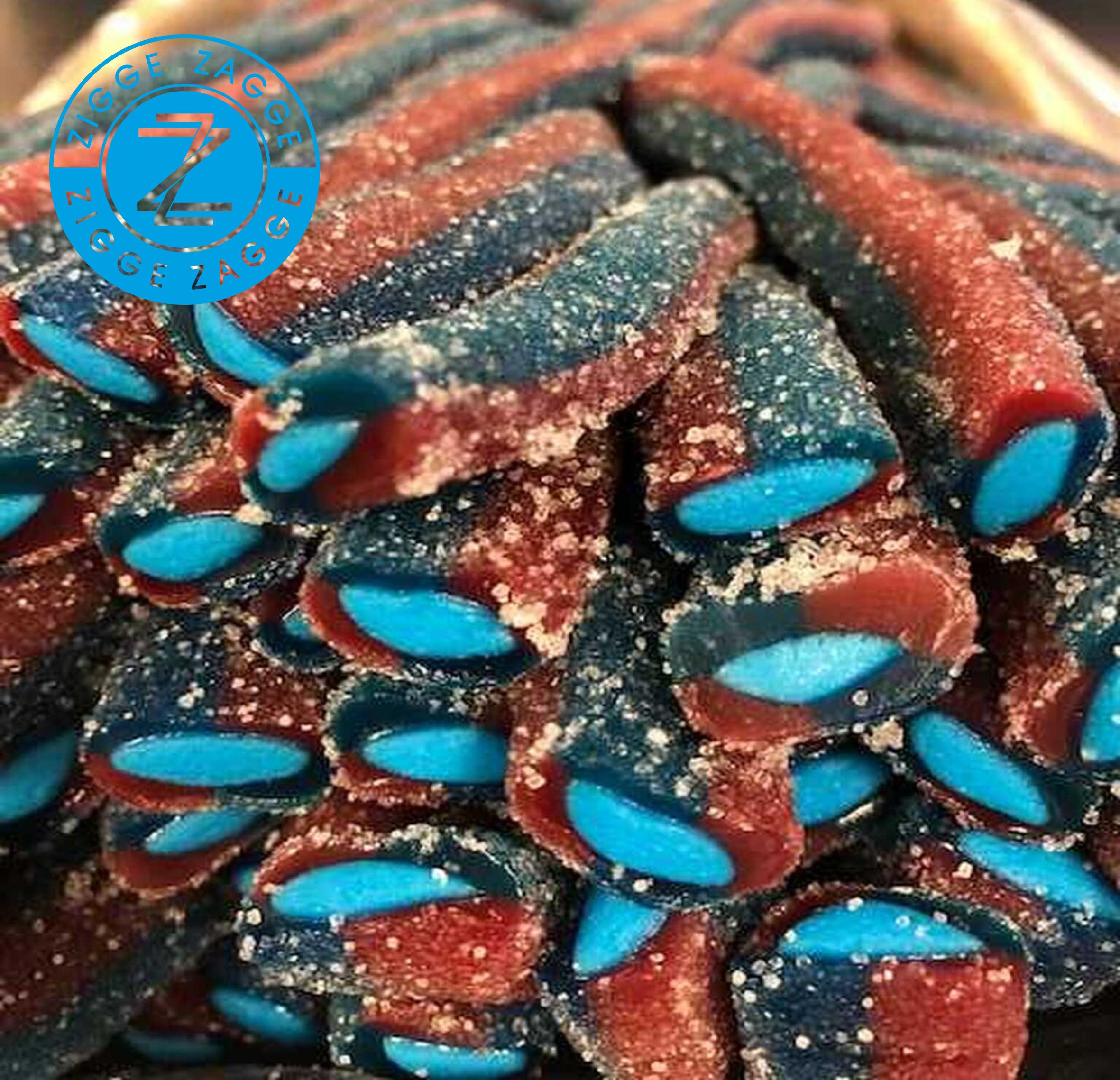 Ingredienser: Socker, glukossirap, vetemjöl, majsstärkelse, gelatin, vegetabiliskt fett ( kokos) vegetabiliskt olja (kokos) syror: E330, E296, potatisstärkelse, vatten, aromer, surhetsreglerande medel: E331, maltodextrin, ytbehandlingsmedel carnaubevax, fuktighetsbevarande medel E422, emulgeringsmedel: E471, färgämne: E100.