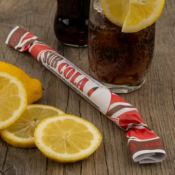 Ingredienser: Socker, glykossirap, ättika, citronsyra, aromer, färgämne: E120, E150